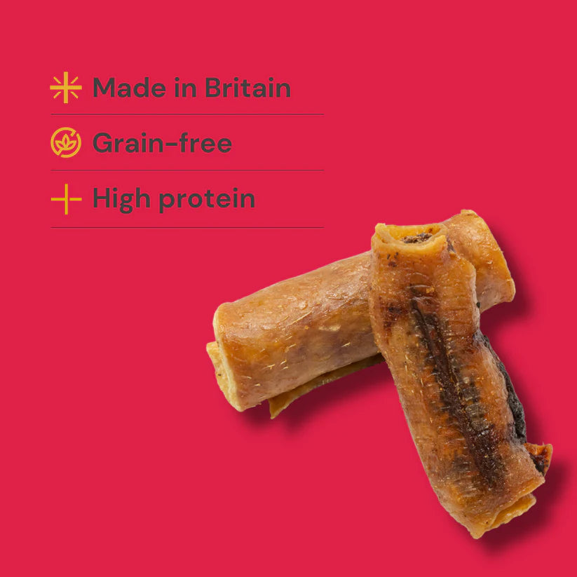Our gourmet chicken sausages, wrapped in pork rind, these delicious Pigs in Blankets are loved by dogs of all shapes and sizes. They are slow roasted in their own juices to ensure mouth watering taste in every bite!