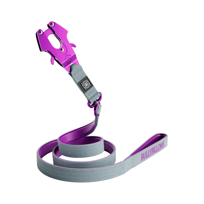 1.4m LIGHTER Swivel Combat Lead | Neoprene Lined, Secure Rated Clip with Soft Handle - Purple & Metal Grey