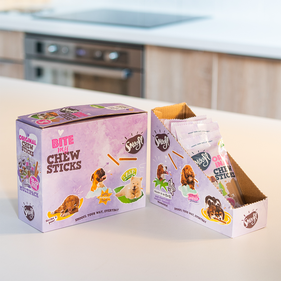 Smoofl Chew Sticks are the ultimate multi‑purpose treat for your pup. Use them to create your own dog ice cream recipe, or simply enjoy them as a chewable dental stick. Crafted to be gentle and guilt‑free, they’re designed so every dog can enjoy Smoofl.
