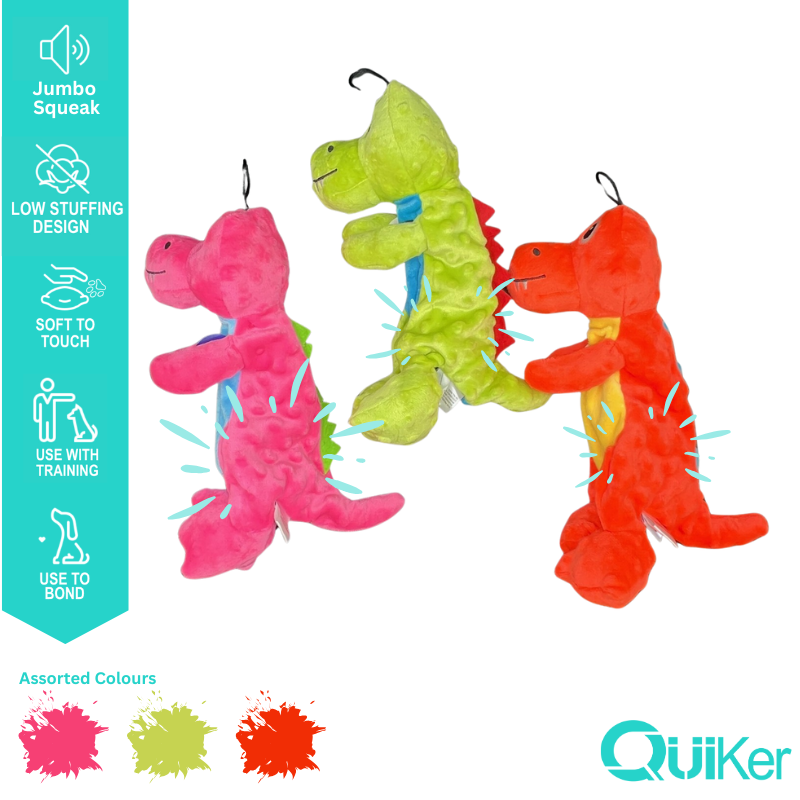 Jumbo Squeak Fun: Each dino hides a jumbo squeaker in its unstuffed body, keeping playtime exciting and engaging.