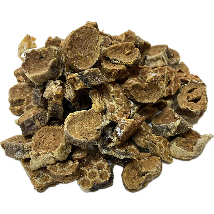 Give your dog a taste of the ocean with our Fish Skin & Cod Sushi Roll-Ups. Each piece is made by tightly layering crisp fish skin around tender cod, then air‑drying it to maintain all the natural nutrients. High in protein and rich in omega‑3s, these roll-ups offer a wholesome chew that supports healthy skin, a shiny coat, and comfortable joints — all while delivering a flavour dogs adore.